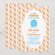 Little pumpkin baby shower invitation featuring maple and oak leaves in autumn harvest colours
