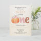 First birthday pumpkin invitation for a fall theme. Features flowers on a sweet little pumpkin and fun typography. Personalise the editable text.