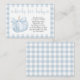Featuring an adorable blue pumpkin adorned with a delicate bow and soft gingham accents, this card complements any pumpkin baby shower or fall-themed baby boy shower. Whether tucked inside invitations or displayed at your event, it’s the perfect way to combine seasonal style with a heartfelt message.