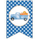 Our Little Pumpkin blue truck with pumpkins and blue plaid birthday party bunting banner.