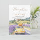 An elegant and pretty gender neutral invitation featuring "a Little Pumpkin is on the way" with a stunning country view - a classic car driving along the lavender fields with a cute pumpkin on top!