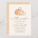 Invite friends and family to share in the joy of your little one's arrival with this pumpkin themed baby shower invitation.