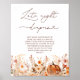 The Little Pumpkin Fall Floral Late Night Diapers Game Poster embodies the essence of rustic elegance and autumnal charm, inviting loved ones to celebrate the upcoming arrival of a precious little one amidst the beauty of the fall season. With its whimsical depiction of rustic wildflowers and a charming pumpkin, symbolising warmth and abundance, the item sets the stage for a gathering filled with love, laughter, and cherished memories. Complementing the rustic aesthetic is the elegant modern calligraphy, which adds a sophisticated touch to the items, evoking a sense of refinement and style. With its blend of rustic charm and modern elegance, this item promises a baby shower that is as enchanting as it is memorable, where family and friends gather to shower the parents-to-be with love and blessings as they embark on this new chapter of their lives. Matching items are available.