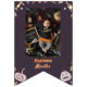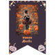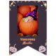 Little Pumpkin Halloween Monthly Photo Bunting Flags designed for our Halloween collection, this customisable Milestones Sign features editable photos, dark purple background, pink pumpkin, spooky skull, spider web & decorative fonts. Matching items available.