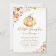 a little pumpkin is on the way. Gold and blush autumn watercolor flowers with pumpkin illustrations . The text and colours can be personalised.