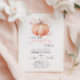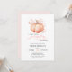 This elegant and charming baby shower invitation features a beautiful watercolor illustration of a pumpkin with a delicate pink ribbon, perfect for celebrating the upcoming arrival of a little one in the fall season.