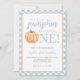 Little Pumpkin Pastel Blue Fall First Birthday Inv Invitation