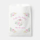 Our Little Pumpkin Pink Bow Girl's First Birthday Favour bag with beautiful fall pastel watercolor florals and an white pumpkin with a pretty, coquette pink bow. Perfect for Girl's 1st birthday this autumn.