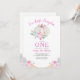 Our Little Pumpkin Turning One First Birthday party invitation with beautiful fall pastel watercolor florals and an white pumpkin with a pretty, coquette pink bow. Perfect for Girl's 1st birthday this autumn.