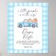 Pumpkins invitation featuring a watercolor blue truck filled with pumpkins. Blue cage. Personalise with your information.