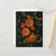 little pumpkins on black background with orange flowers, butterfly and green viney leaves