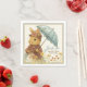 Rustic-style baby shower collection, decorated with soft colours and a vintage watercolor image of a cute little bunny with a parasol, in a style similar to Beatrix Potter's Peter Rabbit.