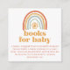 This beautiful bright baby shower books for baby enclosure card features a boho style rainbow and sun in a retro style modern font. This books for baby card is perfect for a gender neutral theme and so many retro colours used in the invitation are popular to purchase balloons to match your retro theme. The back of the card features a boho rainbow pattern background.