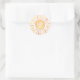 Encircling the sun, "Mum's Name Baby Shower" and the baby shower date are elegantly placed around the edge, creating a seamless and personalised design. This sticker is a perfect addition to favours, thank-you gifts, or decorations, tying together your sun-themed celebration beautifully.
