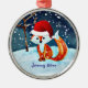 A cute winter scene of a fox wearing a Santa hat in the snow is easily personalised.