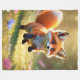 A playful baby red fox frolics through a sunlit meadow, its fluffy tail twirling in joyful pursuit. With its bright eyes and spirited energy, the scene captures the innocence and carefree nature of youth. "Original Image was generated by Meta AI. AI generated artwork. Licensed under CC BY-SA 4.0.