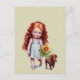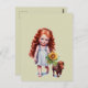 Little Red Head Girl Walking Dachshund Postcard
