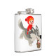 The flask itself is fine. It’s a cheap flask, obviously bought in bulk, however am prepared to overlook that. Given that it is a personalized item, I would have liked to have seen gift boxing instead of the generic packaging. Terrible printing, and/or quality. It’s a cheap, tacky vinyl. It is not cut straight and is also applied in a way that it is overhanging the bottom, causing the glue to catch on items and it will eventually roll and tear, damaging the wrap.