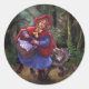 Little Red Riding Hood Art ornament features our original art of a girl in a red hooded cape carrying a basket of goodies covered with a purple and white chequered cloth accompanied by the big bad wolf in a deep dark forest on the path to granny's house. On the back are the customisable words, "Once Upon a Time" in white on a deep red. This whimsical fairy tale art digitally painted by our talented children’s book artist, Traci Van Wagoner, makes a perfect gift for anyone who loves fairy tales, loves Little Red Riding Hood and the Big Bad Wolf, and fir anyone who loves whimsical fairytale artwork. Who's afraid? Not Little Red Riding Hood.
