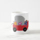 A little red wagon with a load of toys. An elephant, some sports balls, a little engine and an airplane. A cute design.