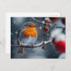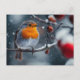 Cute little robin bird sitting on a branch at winter, christmas concept,