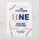 This design hits a home run with a rookie baseball theme! The background's got that classic baseball texture, paired with bold red and navy blue fonts—just right for celebrating your little slugger first birthday. Customise with your event details to hit it out of the park! Available as printable invites and instant downloads. Batter up!