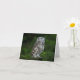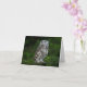 A lovely little Eastern Screech Owl sits on a branch, looking up at an insect. She is an adult grey phase and loves to show off for visitors. A portion of the sale of this card is donated to Blackland Prairie Raptor Centre in support of their mission.
