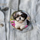 Little Shih Tzu Puppy Basket Flowers 10 Cm Round Badge