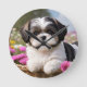 Little Shih Tzu Puppy Basket Flowers Round Clock