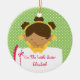 Personalised Sweet african american girl Little Sister Christmas Ornament set on a lime green polka dots background. A Wonder Christmas gift sure to be treasured for many years to come.