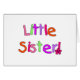 Little Sister T-shirts, bodysuits, cards, tote bags, and other little sister items with bright multicolors text.