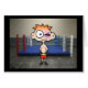 Cute cartoon boxer with orange hair and red shorts standing outside the ring with a big purple shiner. This little guy is a champion in the making!