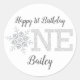 Little Snowflake Silver Glitter 1st Birthday Classic Round Sticker