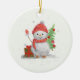 little snowman with the christmas tree ceramic ornament