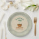 "Welcome a new little sprout with this charming garden-inspired baby shower paper plates! Featuring a soft green gingham and a whimsical potted sprout illustration, and elegant typography, this paper plate is perfect for a garden-themed or nature-inspired celebration. Customise the template with your event details for a personalised and memorable shower. Ideal for expecting moms who love greenery, rustic vibes, and earth-toned themes. Make your 'Little Sprout' baby shower as unique as the occasion itself!"