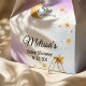 Present your party treats in these magical starry night favor boxes. The design highlights a golden crescent moon paired with a whimsical scattering of glitter stars over a blend of ethereal purple and blue watercolor hues. They make a charming addition to any gender-neutral "A Little Star is Brewing" themed event for expectant parents.