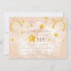 Bohemian rainbow first birthday invitation in muted pink, magic dust and gold shiny stars. Click the "customise further" button if you wish to re-arrange and format the style and placement of the text.