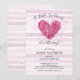 Little Sweetheart Girls Baby Shower Invitation featuring a pink glitter heart set on a pink & white stripe background with a matching back.