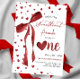 Little Sweetheart Valentine Birthday Invitation featuring a watercolor red bow and heart accents.