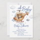 Little tiny pilot helicopter baby shower invitation template. Oh Baby cute baby teddy bear helicopter pilot in the clouds, a tiny pilot is on the way baby shower invitation.