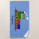 Little Train Design Beach Towel with customisable personalisation and background colour.