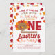 Personalise this cute Little Turkey Thanksgiving 1st Birthday Invitation with your own details!