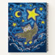Swirly colours dance in the whimsical night sky with the moon, the stars and an owl. By Paxdomino