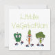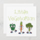 If your child loves veggies or is a vegetarian, you'll love this cute veggie design with text that reads Little Vegetarian and has a green pepper, carrot, and broccoli with eyes and smiles!