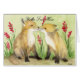 A tiny watercolor painting of two red fox kit sisters in the spring.