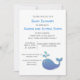 Cute little whale / little squirt blue and white couple's baby shower invitation. The back of the invitation is covered with little blue whales.