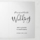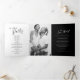 Simple script text and little white heart wedding program with your own two photos, love story, the order of ceremony, wedding party and thank you sections. Personalize this black and white mono wedding trifold program with your own wedding ceremony names and details. Other colors and matching wedding items available. © Design by Sarah Trett for www.mylittleedenweddings.com on Zazzle.