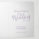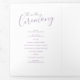 Simple script text and little white heart wedding program with your own two photos, love story, the order of ceremony, wedding party and thank you sections. Personalise this purple and white mono wedding trifold program with your own wedding ceremony names and details. Other colours and matching wedding items available. © Design by Sarah Trett for www.mylittleedenweddings.com on Zazzle.