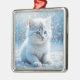 Little White Kitten in Snow Christmas Metal Ornament