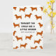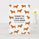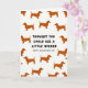 This funny greeting card features a repeating pattern of small dachshunds in warm russet-brown on a creamy off-white background. Each little “wiener dog” has a long body, short legs, and droopy ears, and they face different directions to keep the scene fun and lively. In the center, large black block letters deliver the message: “THOUGHT YOU COULD USE A LITTLE WIENER HAPPY GALENTINE’S DAY.” The text sits right in the middle and stands out clearly against the lighter backdrop. The dogs around it act like a friendly frame, adding a sweet, silly nod to friendship and affection. The simple drawing style and warm colors make it feel easygoing and perfect for a laugh with someone you care about ❤️💌.